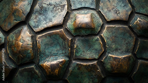 Exploring Turtle Shell Close Up with Intricate Texture and Teal Tones
