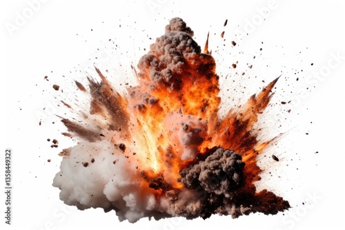 Explosion fire white background destruction.