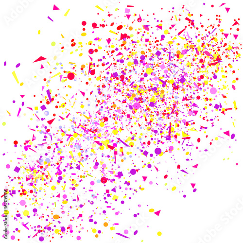 Explosion. Firework. Texture with random geometric elements on white. Geometric background with confetti. Pattern for design. Print for banners, posters, t-shirts and textiles. Greeting cards