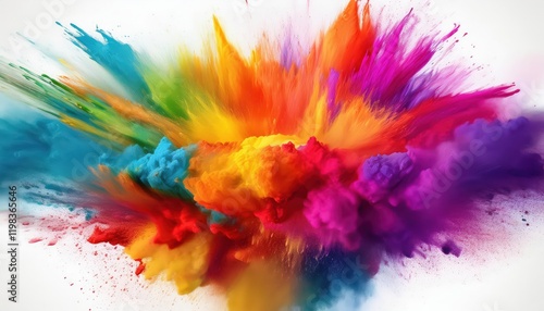 Explosion of Vibrant Colors Holi Festivities Captured in a Dynamic Rainbow Burst on a Clear Canvas