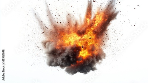 Explosions from malfunctioning machinery with sparks and flames on white background.