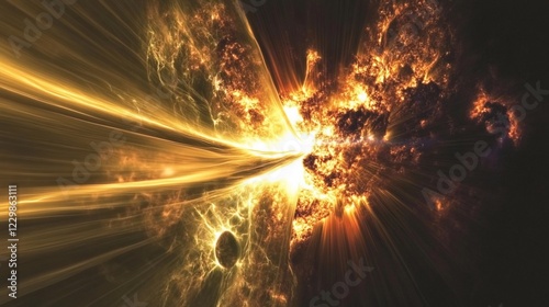Explosive cosmic event featuring radiating energy and dark matter swirling in space