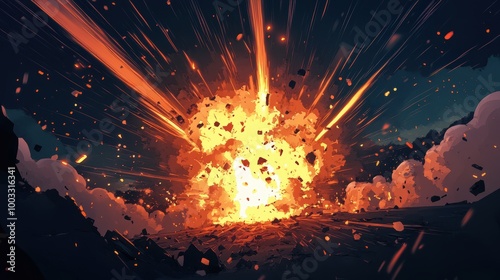 Explosive Night Sky Illumination - Dynamic Vector Illustration in 8K UHD Resolution