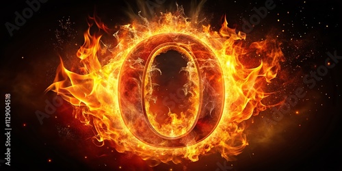 Explosive Representation of the Number Zero Surrounded by Intense Flames with Ample Copy Space for Creative Design and Marketing Applications