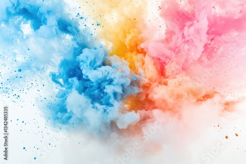 Explosão vibrante de tinta colorida com tons de azul, rosa, laranja e amarelo, capturada em movimento dinâmico, criada com IA generativa para um efeito visual impressionante