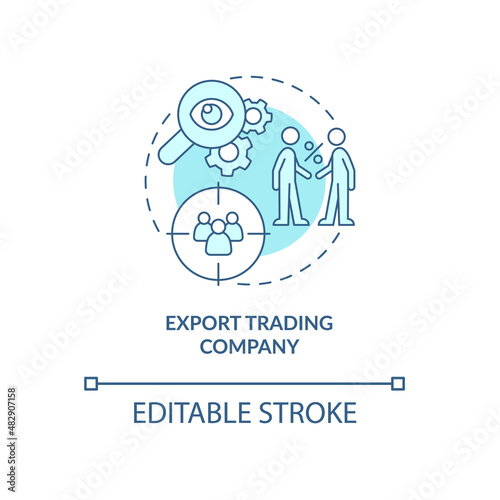 Export trading company turquoise concept icon. Outsourcing firm. Types of business abstract idea thin line illustration. Isolated outline drawing. Editable stroke. Arial, Myriad Pro-Bold fonts used