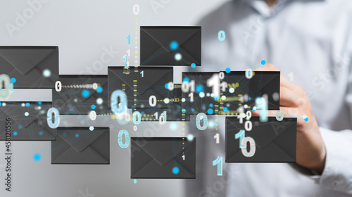 express envelope and parcel abstract technology background. Business quantum internet network communication and high speed parcel