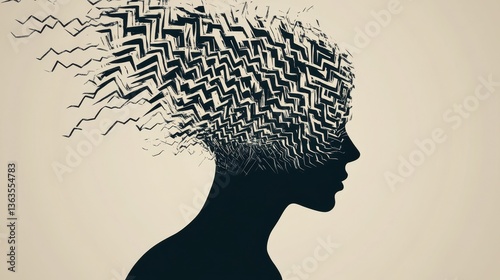 Expressing the turmoil of the mind through abstract representation with zigzag patterns in a minimalist human silhouette