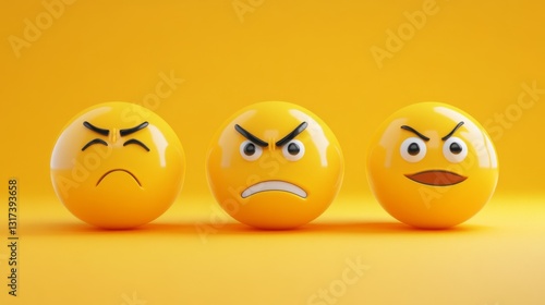Expressive emoticons on yellow background displaying anger and surprise for emotional design concepts