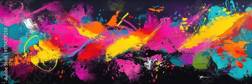 Expressive, thick brush marks in bright neon colors, forming a dynamic, abstract design
