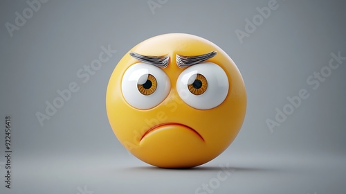 Expressive Worried Emoji Face on Gray Background - Minimalistic 3D Render with Trembling Mouth and Anxious Eyes