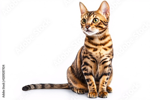 Exquisite Bengal Cat Exhibiting Distinctive Rosette Markings Isolated on White
