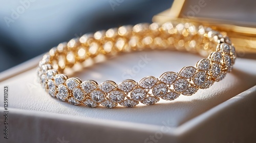 Exquisite Diamond Gold Bracelet on Elegant Display Box : Generative AI