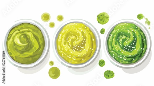 Exquisite Four Spicy Wasabi Paste White Background Top View Presentation