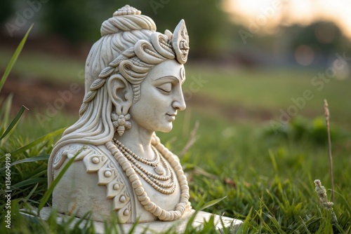 Exquisite Stone Sculpture of Deity in Serene Outdoor Setting Generative AI