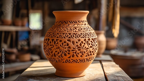 Exquisite Terracotta Pot with Intricate Design | Decorative Clay Planter for Home and Garden