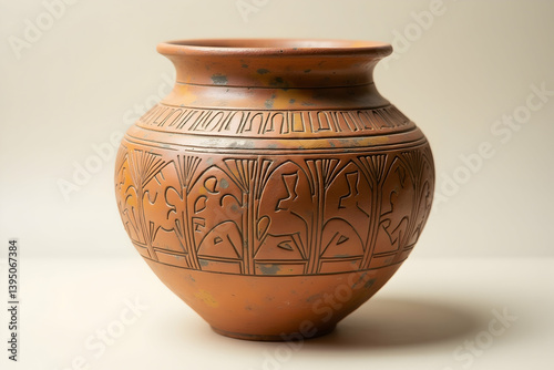 Exquisite Terracotta Vase, A High-Resolution Stock Photo Featuring Intricate Patterns and Traditional Design with Warm Earth Tones for Cultural Themes