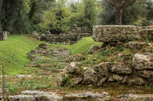 exterior landscape design stone road track of ancient Greece ruins in garden park outdoor nature fresh nicely environment