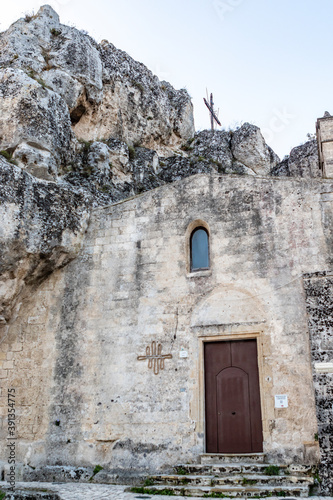 Exterior of the Santa Maria de Idris cave church in Matera, Basilicata, Italy - Europe