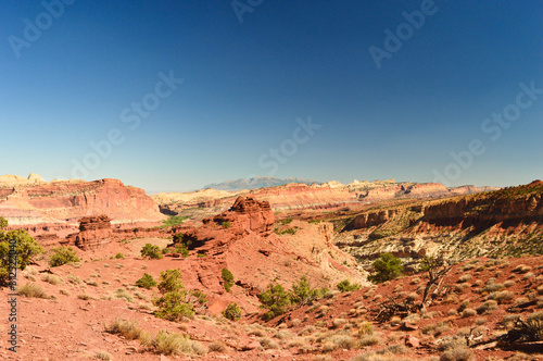 Extraordinary landscape, mountains and rocks views from viewpoint in the Capitol Reef national park in south central Utah