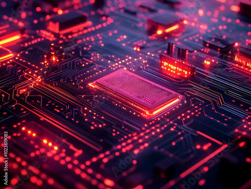 Extreme Close-Up of Flat Nano Circuitry Pulsing with Energy in Futuristic Device - Innovative Technology Concepts in Simple Vector Illustration