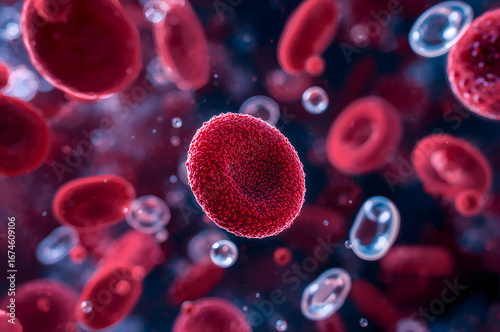 Extreme closeup of red blood cells and plasma bubbles in bloodstream flow circulation