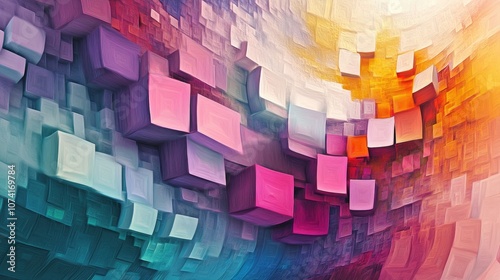 Extruded abstract fractal background with a futuristic wavy design Modern art painting featuring trendy desktop wallpaper elements showcasing colorful 3D rendered cubes and squares