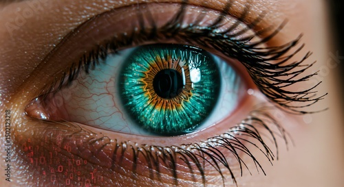Eye Close Up with Digital Code Reflection