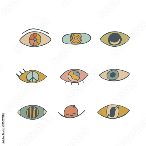 eye outline icons. abstract eyes. Open and closed eyes images, sleeping eye shapes with eyelash. Clip Art. Vector illustration.