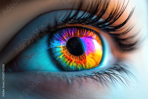 Eye with Vibrant Kaleidoscope Colors Reflection in Iris