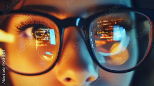 Eyeglasses Reflecting Computer Screen Displaying Code Technology Concept