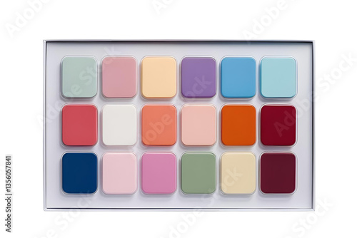 eyeshadow palette, assorted shades, white background, isolated, no background