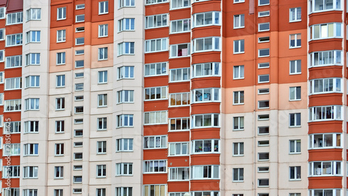 Facade of multistory apartment house. Urban landscape. Wonderful modern building. Block of flats.