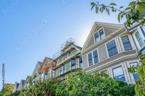 Facade of row of houses and trees in the suburbs of San Francisco, California