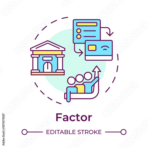 Factor multi color concept icon. Financial institution. Money transfer process. Factoring company. Bank building. Round shape line illustration. Abstract idea. Graphic design. Easy to use in article