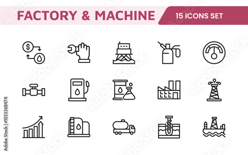 Factory and Machine Icons Collection. A Versatile Set for Industrial Design, Production Workflows, Machinery, Factory Management, and Engineering Solutions.