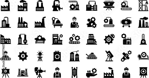 Factory flat Icon set isolated on transparent background, Factory icon set. Vector industrial buildings pictograms. factory icon. industry and manufacturing symbol.