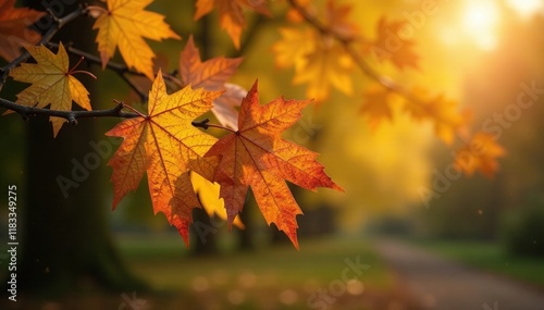 Faded oak leaves cling to gnarled branchlets in the golden light of autumn, nature, autumn