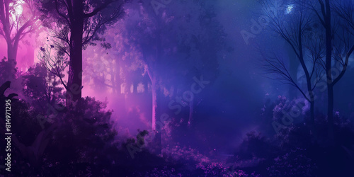 Fairytale forest in dark lilac colors, beautiful fairytale background