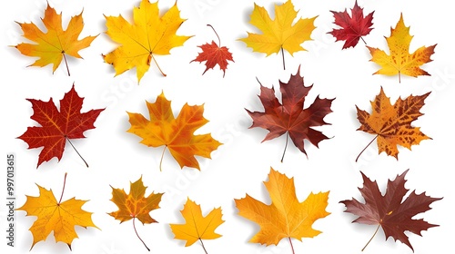 Fall and autumn leaves isolated on a white background collection Aİ Generative