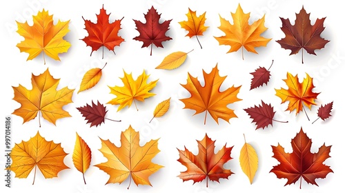Fall and autumn leaves isolated on a white background collection Aİ Generative
