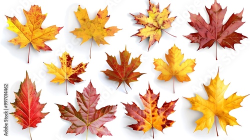 Fall and autumn leaves isolated on a white background collection Aİ Generative