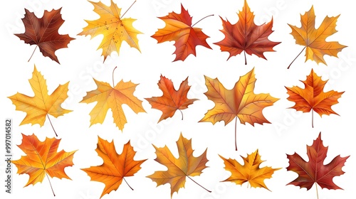 Fall and autumn leaves isolated on a white background collection Aİ Generative