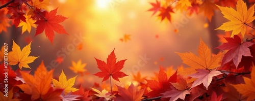 Fall leaves in shades of red, orange, and yellow, macro, foliage, close-up