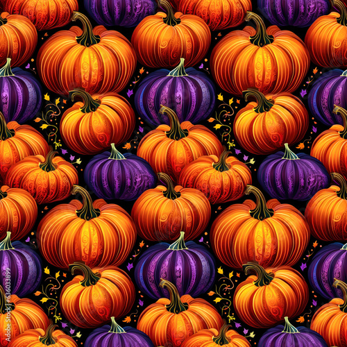 Fall pumpkins orange and purple seamless texture, tiling pattern, wallpaper, background, texture