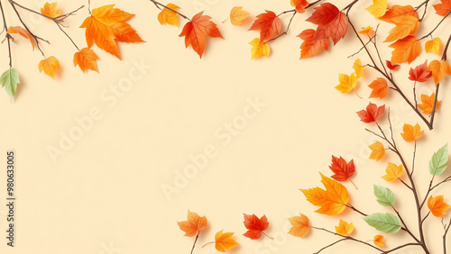 Fall sale banner template on a beige background with copy space for the online promotion of autumn products, shopping mall offer, Autumn shopping concept,