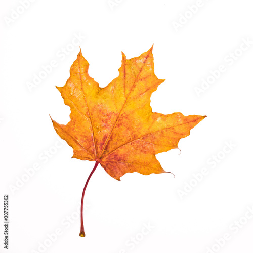 fallen, orange, autumnal, maple leaf, isolate on white background, square frame