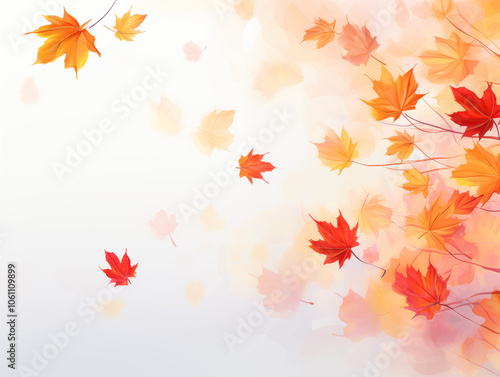 Falling Autumn Leaves Illustration, Elegant Red and Orange Maple Leaves on Soft Background