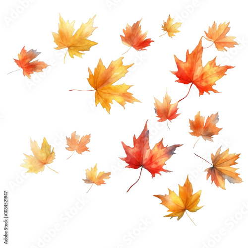 Falling Autumn Maple Leaves in Warm Hues on Black Background