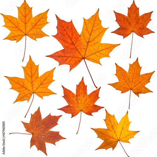Falling autumn maple leaves isolated on white or transparent background. PNG